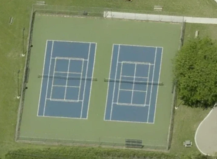 2 tennis courts with pickleball lines using the tennis net. This is a newly resurfaced court in 2017. Can park off of Stellar Ln which is nearest to the courts.