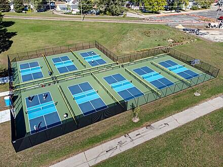 6 dedicated pickleball courts. The park is located BEHIND residential homes. Look for a small sign that is located by what look likes a "bike path" and drive on it to the court. A portable potty is available onsite during the summer months.